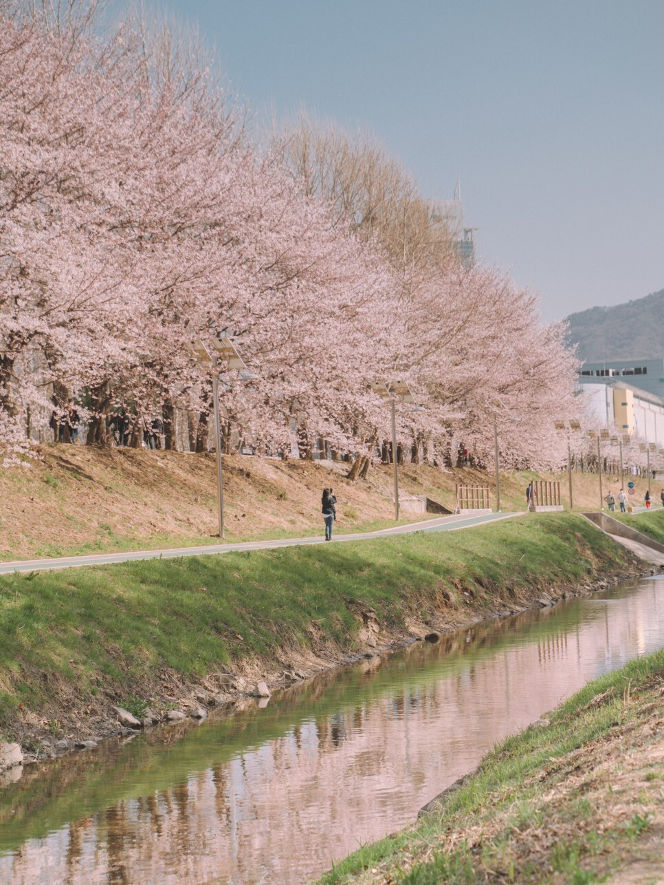 4월 7일 만개 이후로는 하천 위로 벚꽃비가 내려요. 만개가 조금 지난 시점이라도 충분히 아름다운 풍경을 감상할 수 있답니다.
