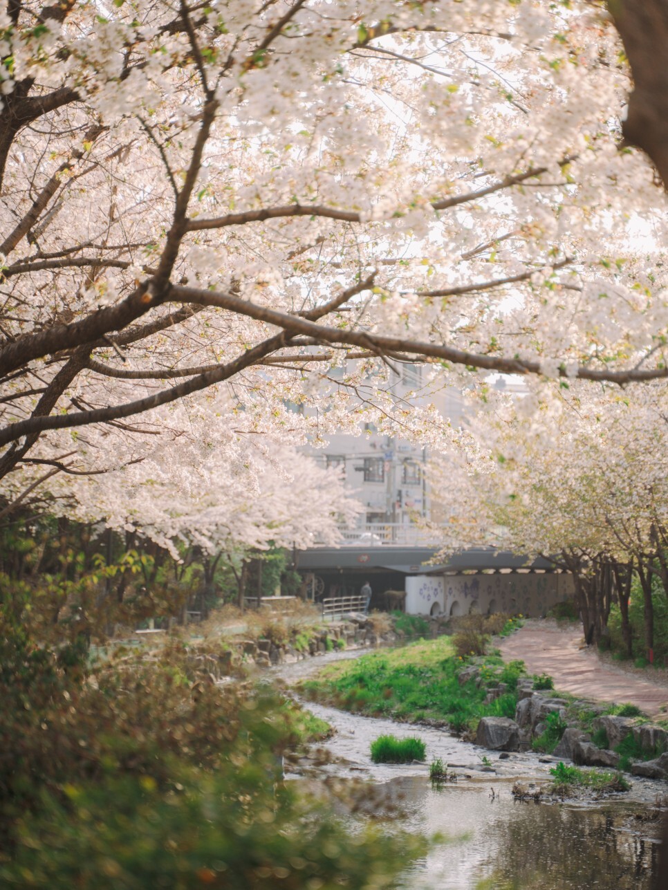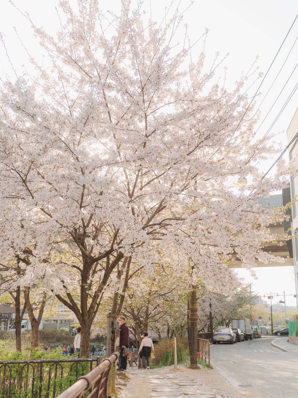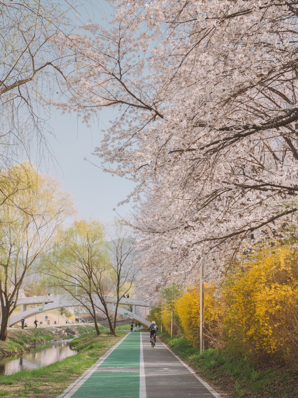 광나루 한강공원에서 올림픽공원까지 이어지는 성내천 구간에선 양옆으로 흐드러지는 벚꽃 터널을 만날 수 있어요. 꼭 해당 구간이 아니더라도, 하천 옆에는 키가 낮은 벚꽃들이 줄지어있어 아름다운 풍경을 자아낸답니다.