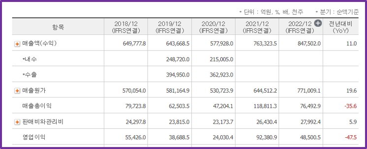 포스코 손익계산서