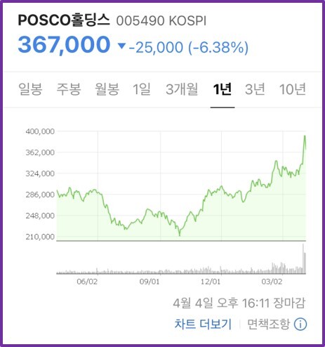 좌)최근 상승세 중인 포스코홀딩스