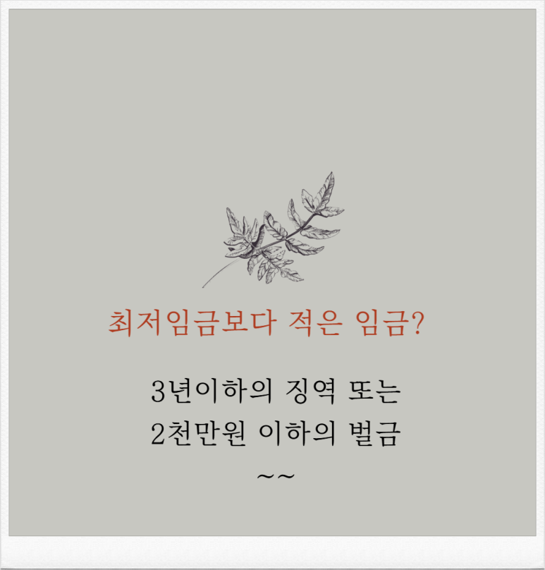상시근로자가 5인 미만이더라도 최저임금 이상의 급여가 지급되어야 하는데요. 최저임금보다 적은 금액을 지급할 경우에는 3년 이하의 징역 또는 2,000만 원 이하의 벌금형에 처해질 수 있어요.